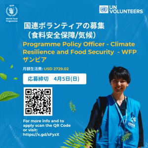 国連ボランティア募集 日本と国連の食料安全保障のための協力:サハラ以南アフリカへの日本人専門家の国連ボランティアとしての派遣